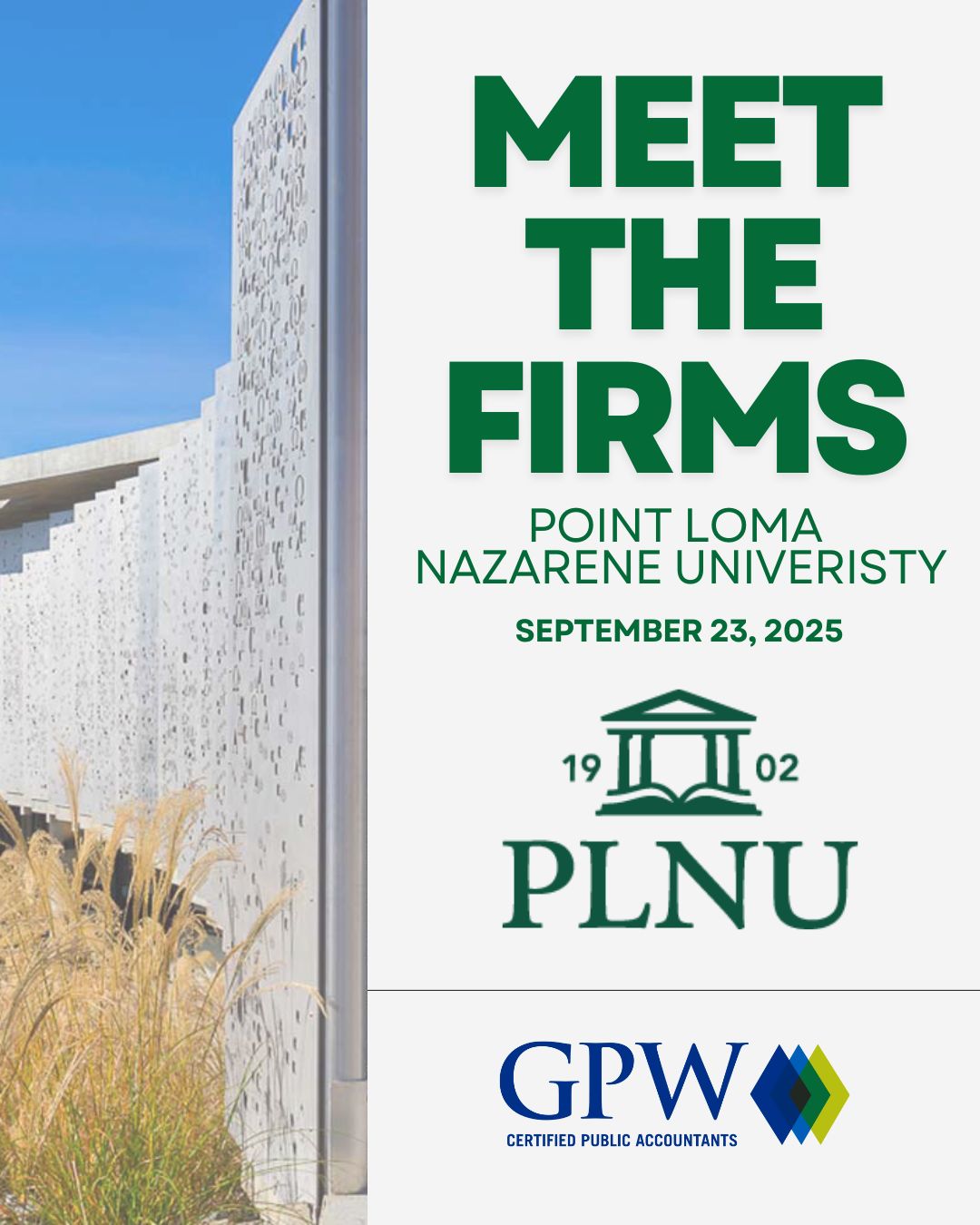 Thank you Point Loma Nazarene University for having GPW be a part of your Meet the Firms event!
